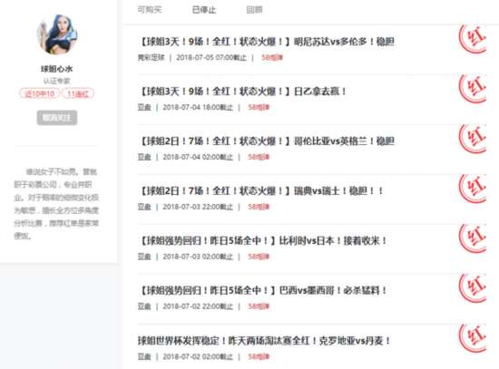 今日竞彩官方没有比赛开售,推荐的重点无疑已经集中在马上要开战的世界杯四分之一决赛;关于世界杯赛事的预测,球通多位专家都保持着出色的状态,用持续连红带领粉丝收米! 专家球姐近日世界杯+小联赛豪取11连红,早场美职红单后还刷新了个人的最长连红记录。