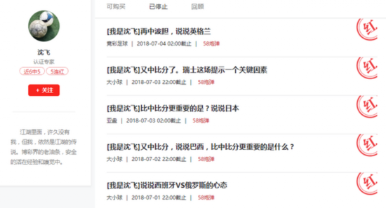 球通平台的特约专家沈飞虽然推单不多,但是场场精品,世界杯赛事预测已经5连红,四分之一决赛他将有何表现?我们拭目以待!
