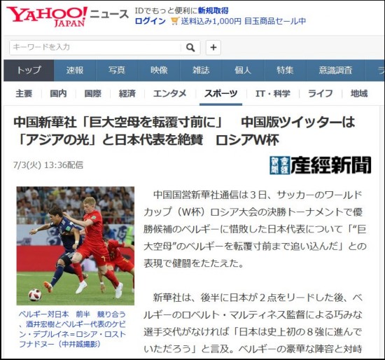 虽然日本队已经遗憾止步于世界杯八强之外,但这几天日本人最常用雅虎新闻站上,一条体育新闻却洋溢着别样的气氛。