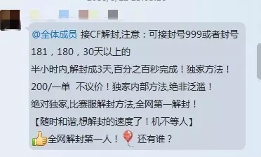任何YY/Q群以收费代解封CF999天的都是骗子