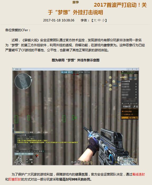 前段时间很多人在卡网买了梦想自瞄,突然有一天突然跑路了,可能大家不知道作者是被水表了 总结一下历史腾讯打击的外挂【现在部分很多都改名继续卖了】 2016年8月10号腾讯发布消息成功打击SY(Avast)透视:http://t.cn/Rt0Atu2 2016年8月26号腾讯发布消息成功打击台湾驱动(大陆):http://t.cn/RtDhhom 2016年9月8号腾讯发布消息成功打击昆零(冰易网游):http://t.cn/RcqNpkJ 2016年10月20号腾讯发布消息成功打击反恐(蝙蝠侠):http://t.cn/RVprp7y 2016年12月2号腾讯发布消息成功打击雷龙内存自瞄:http://t.cn/RfuIQuK 2017年1月18号腾讯发布消息成功打击梦想子弹追踪:http://t.cn/RMm1X06 |
