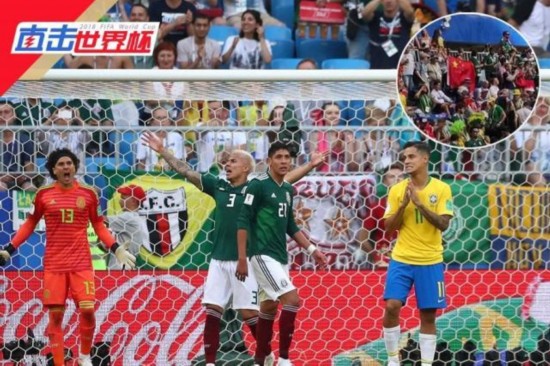 巴西与墨西哥的八分之一淘汰赛展开争夺,在某些交易平台上的球票价格超过万元,但在萨马拉宇宙竞技场内的看台上出现了一小片的空座位。