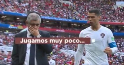 另一个被唇语专家解读的是C罗。小组赛中,虽然凭借C罗的进球,葡萄牙1比0击败了摩洛哥,但这场比赛葡萄牙踢得并不好。中场休息时,C罗特意和主教练桑托斯进行了交流,《阿斯报》通过唇语专家解读了C罗的话语。