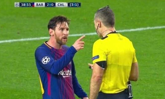 梅西虽然性情相对温和,行事低调,但在球场上遇到不公裁决时,也是“该出口时就出口”。例如,今年年初,在巴萨对阵切尔西的欧冠八强晋级赛中,拉基蒂奇被放倒,但是裁判并未给犯规的坎特出示黄牌,这可气坏了梅西。