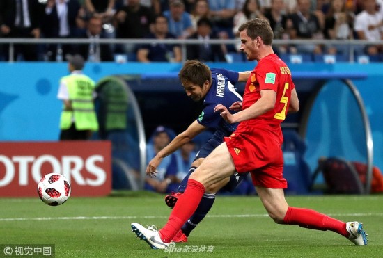 北京时间7月3日,俄罗斯世界杯1/8决赛,日本vs比利时,原口元气用一脚劲射洞穿了比利时的球门。