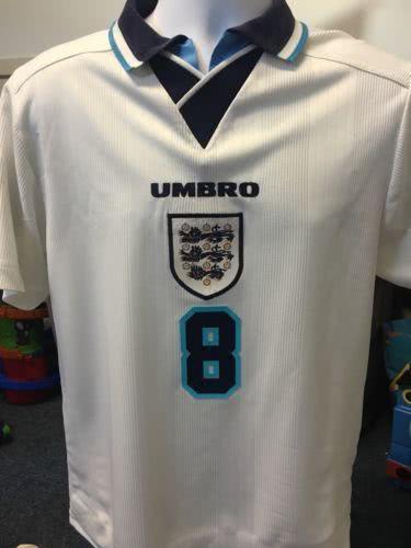 至于在英格兰本土举办的1996欧洲杯上,英格兰队所穿的那套经典白色球衣现在则价值150镑,看到这件球衣,相信不少球迷都会想起加斯科因对苏格兰时攻进的那粒精彩绝伦的进球。